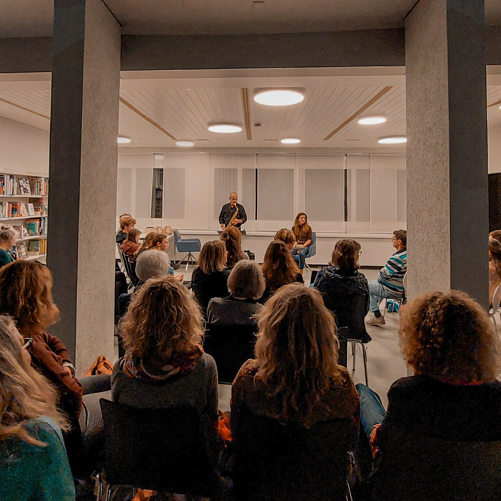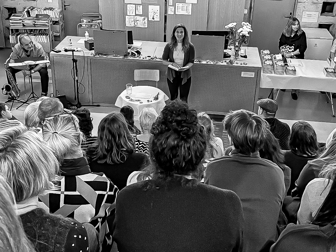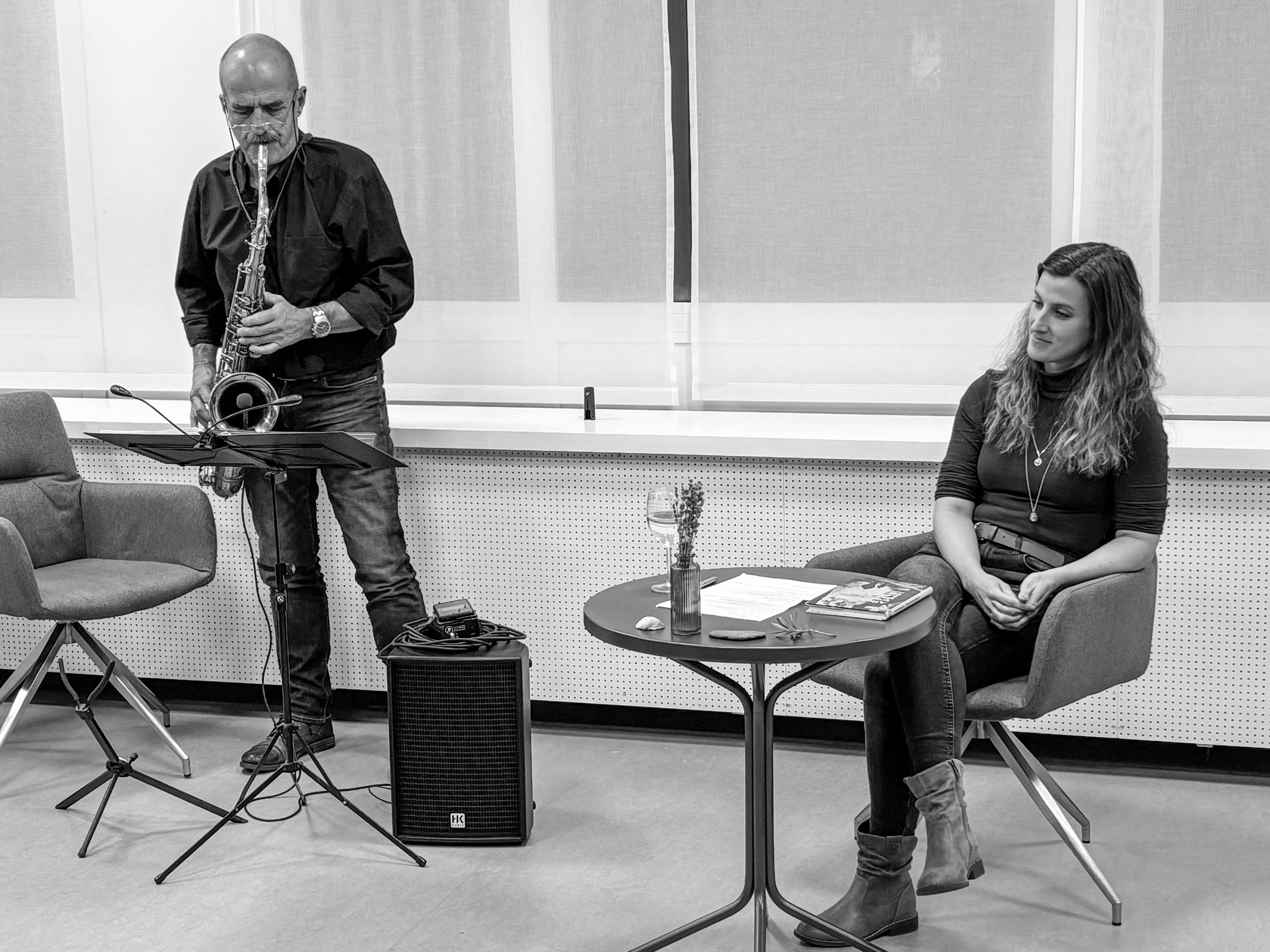 Nach der Vernissage war dies meine erste Lesung. Da ich als Lehrerin in Schönbühl unterrichte, habe ich mich auf diesen Abend besonders gefreut! Tatsächlich waren auch einige meiner ehemaligen und aktuellen Schülerinnen und Schüler anwesend, was mich sehr berührt hat. Mein Paps hat mich auch bei diesem Anlass mit seinen sanften Saxophonklängen begleitet, was beim Publikum sehr gut angekommen ist. Ein Vater-Tochter-Dreamteam eben! Danke an Geda, Ariana und Katharina von der Bibliothek für die Organisation und das tolle Apéro!