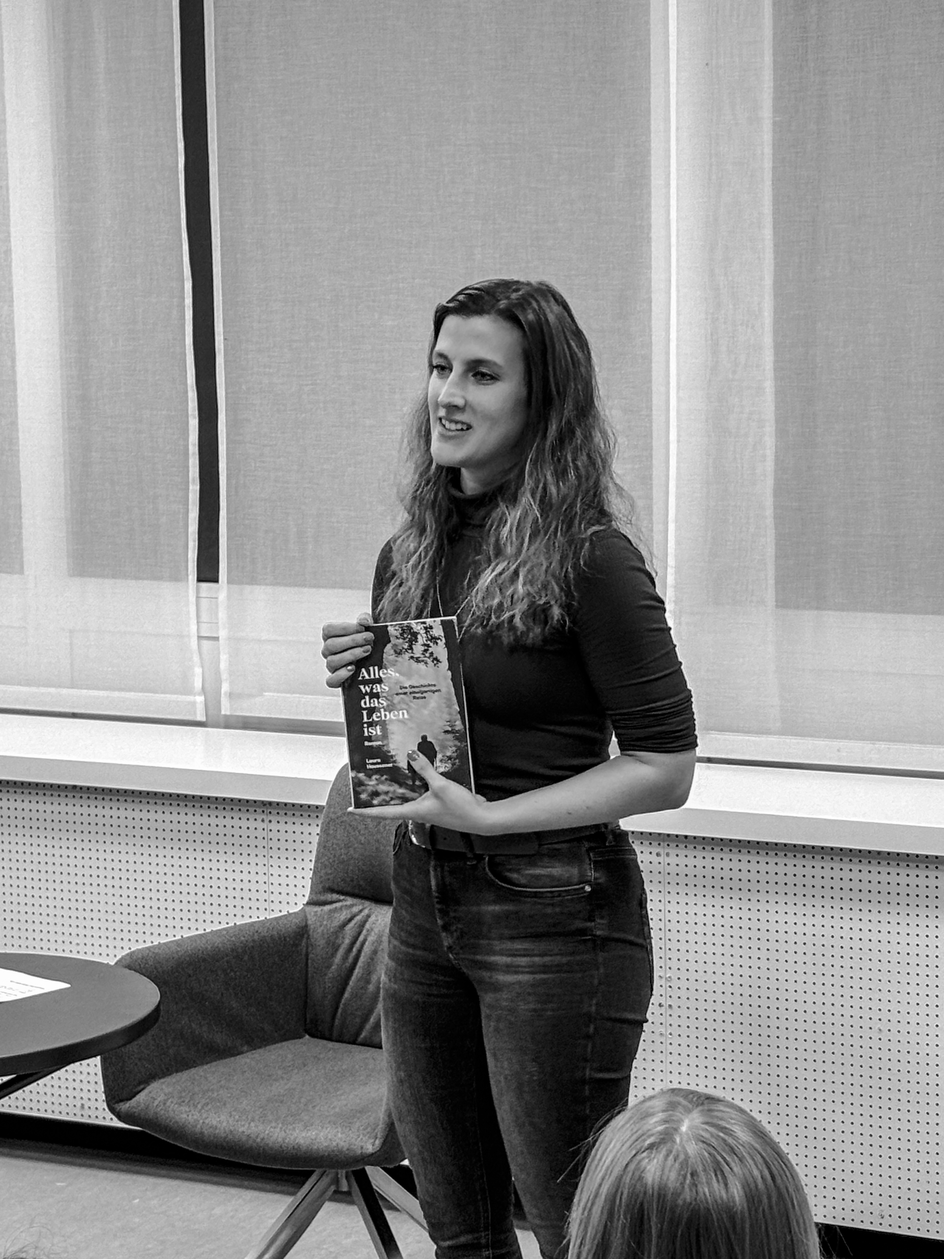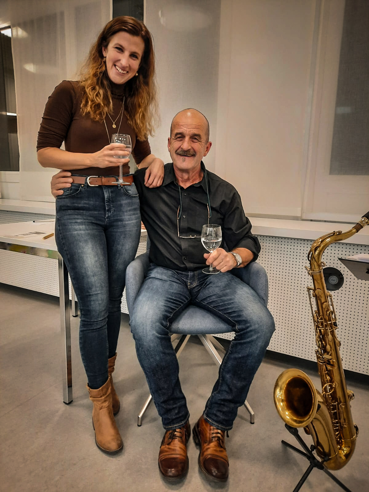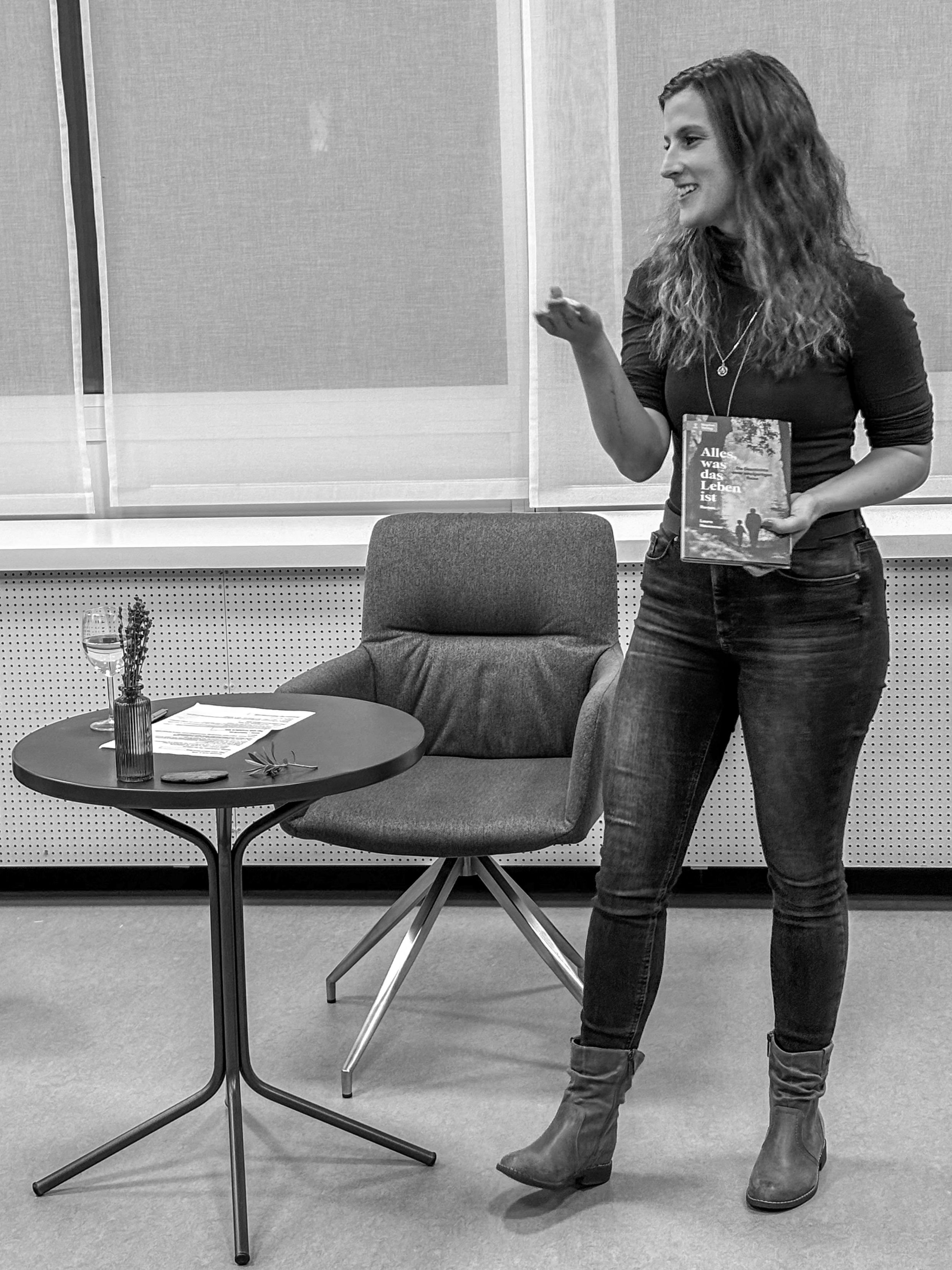 Nach der Vernissage war dies meine erste Lesung. Da ich als Lehrerin in Schönbühl unterrichte, habe ich mich auf diesen Abend besonders gefreut! Tatsächlich waren auch einige meiner ehemaligen und aktuellen Schülerinnen und Schüler anwesend, was mich sehr berührt hat. Mein Paps hat mich auch bei diesem Anlass mit seinen sanften Saxophonklängen begleitet, was beim Publikum sehr gut angekommen ist. Ein Vater-Tochter-Dreamteam eben! Danke an Geda, Ariana und Katharina von der Bibliothek für die Organisation und das tolle Apéro!